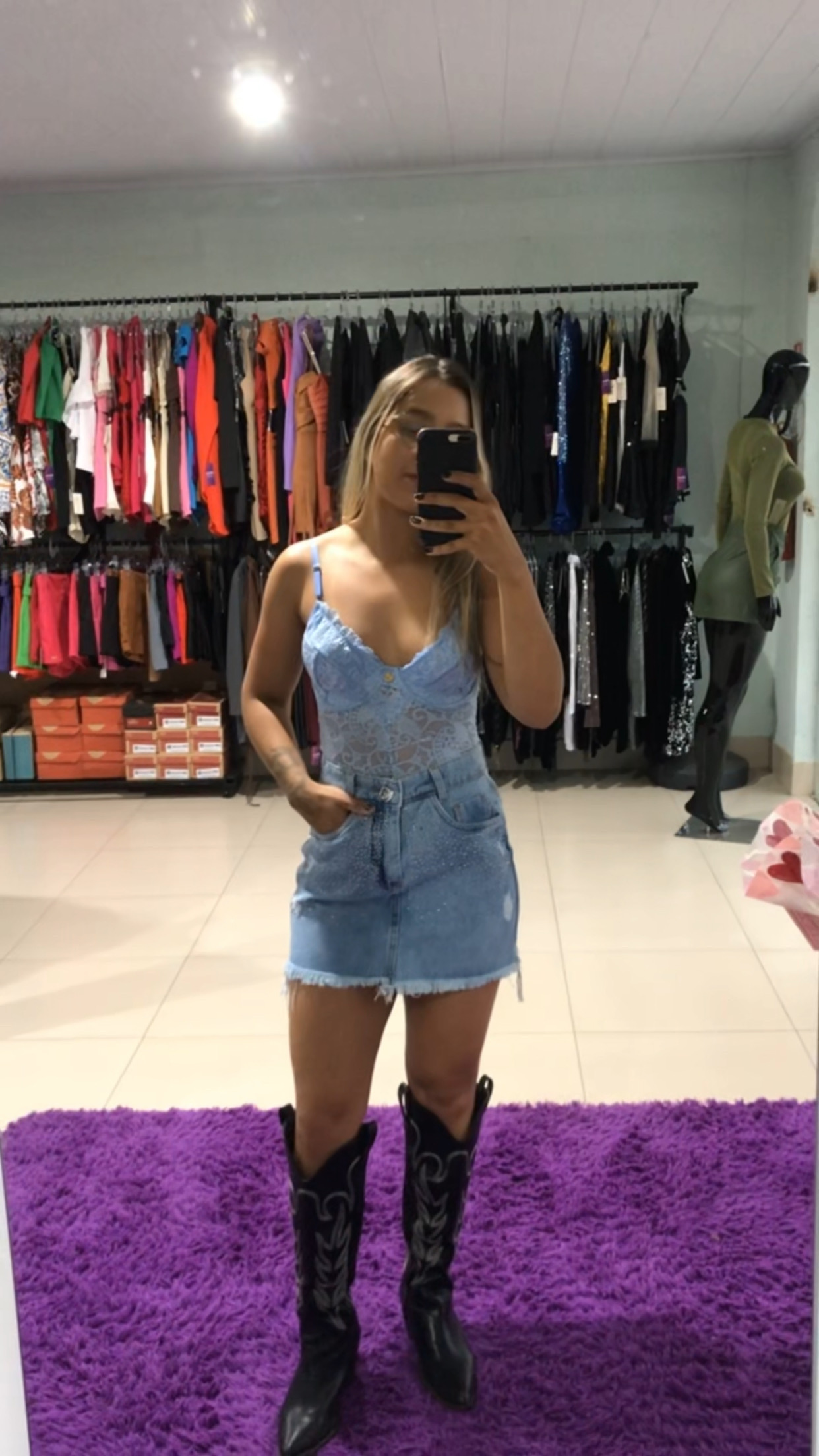 Saia jeans pedrinhas